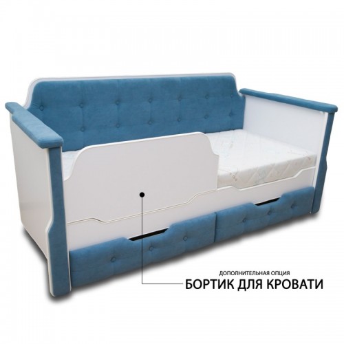 Корпусная кровать Вилли с мягкими изголовьем и подлокотниками откроет простор для фантазии и веселых игр для ребенка.