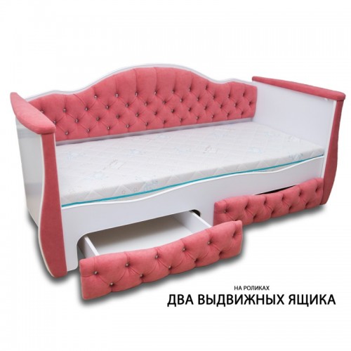 Основной – белый цвет сделает комнату светлее и визуально просторнее. Мягкая накладка в изголовье и скругленные углы делают Клио безопасной, а 2 вместительных бельевых ящика на роликовых опорах – функциональной.