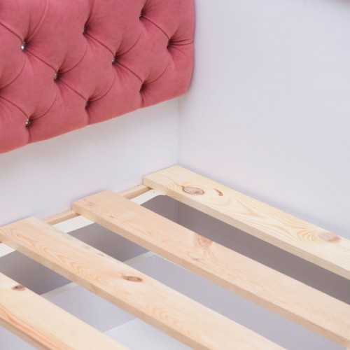 Корпусная кровать Клио с мягкими изголовьем и подлокотниками откроет простор для фантазии и веселых игр для ребенка.