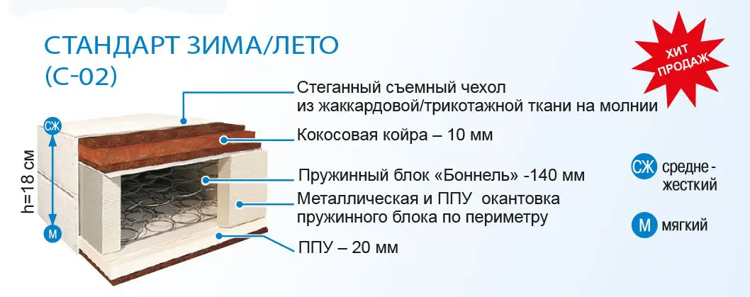 Короб из плотного пенополиуретана, размещённого по периметру матраса. Защищает периметр матраса от проседания и потери формы, обеспечивая долговечность матраса.