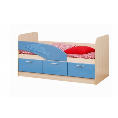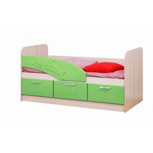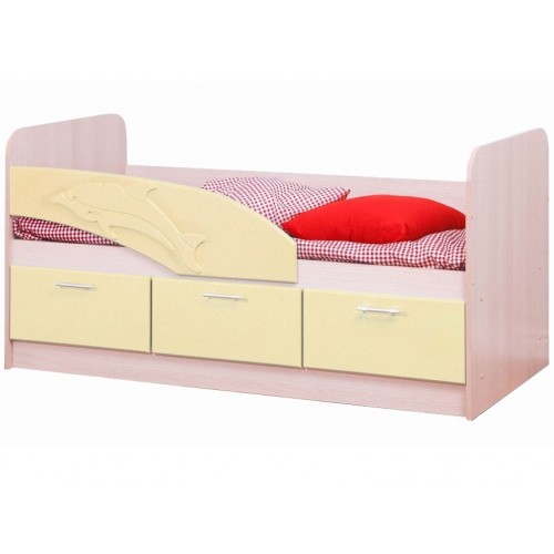 Кровать односпальная «Дельфин» - отличный вариант детской кровати. Удобству способствует 3 вместительных ящика для белья и детских принадлежностей, а для большей безопасности имеется бортик. Также кровать имеет следующие цвета: крем, голубая, эвкалипт, оранжевая.